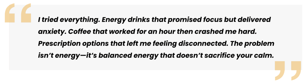 This isn’t just about afternoon fatigue. It’s about the confidence that comes from sustained mental clarity. Never experiencing that 2 PM wall again. Never feeling that racing heart and scattered thoughts again.